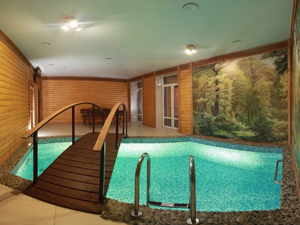 3. Внутри. В прихожей помимо открытой вешалки, много индивидуальных шкафчиков, которые закрываются. Комната с бассейном просторная с большим деревянным столом. Теплые полы. Есть телевизор, музыкальная колонка с usb входом для своей флехи.